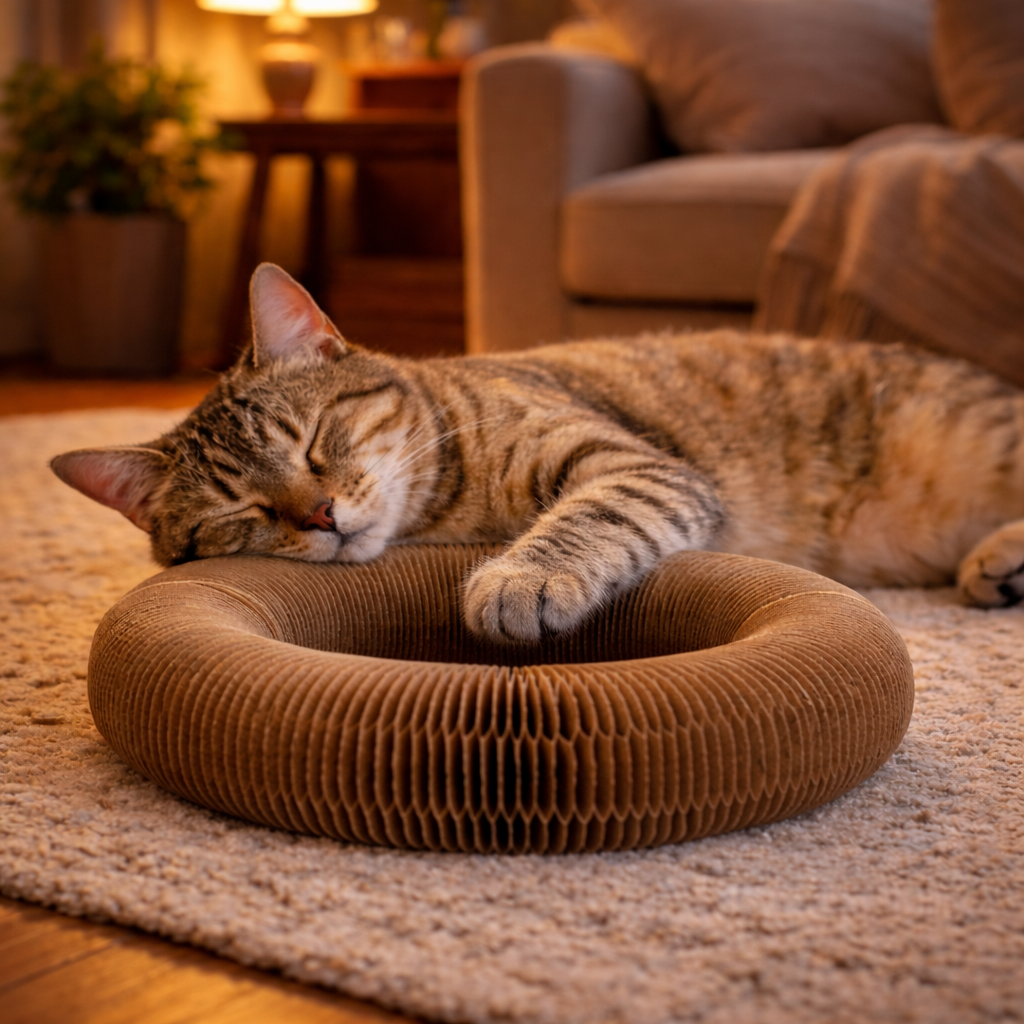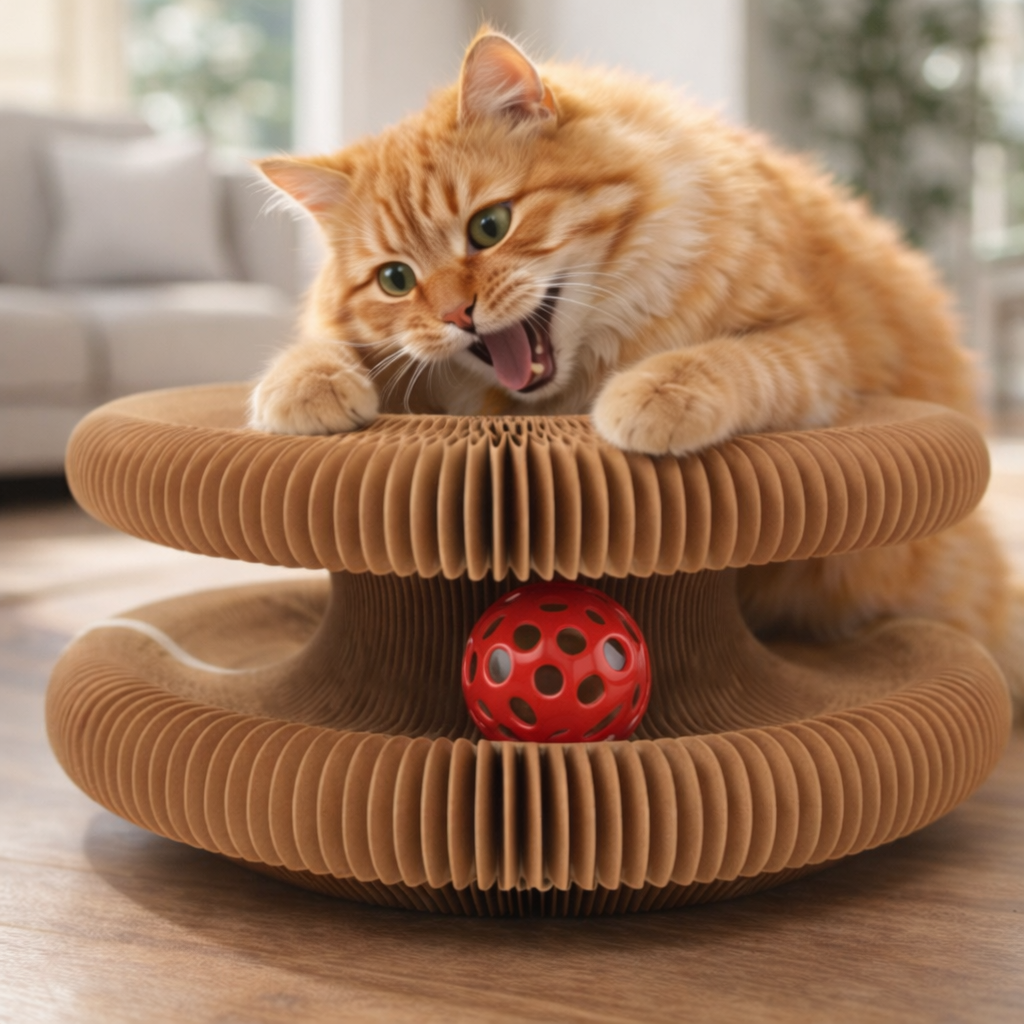 Whirl Paw uses textured cardboard, a material cats instinctively trust and enjoy.
